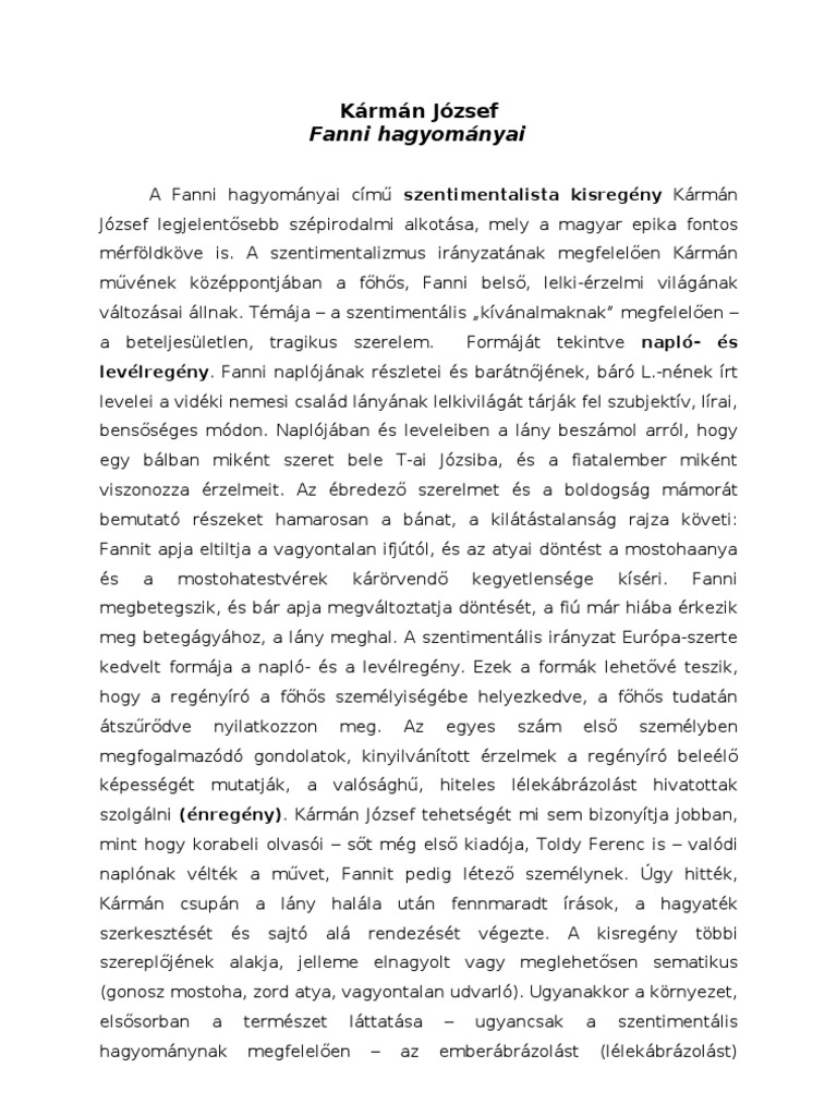 Karman Jozsef Fanni Hagyomanyai Tartalma Olvasonaplo