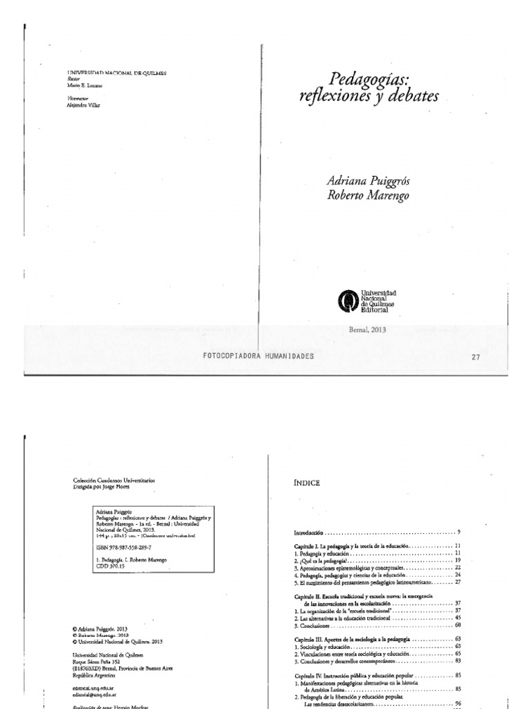 Pedagogia Reflexiones Y Debates Puiggros Marengo Cap 1