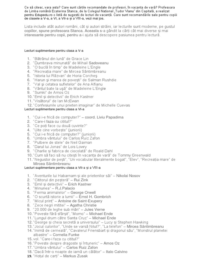 Doc Lecturi Obligatorii Pentru Clasa A Vii A Stroe Daniela Academia Edu