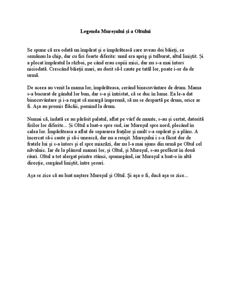 Va Rog Sa Ma Ajutati Textul Se Numeste Legenda Muresului Si A Oltului Va Rog Mult Textul Se Brainly Ro