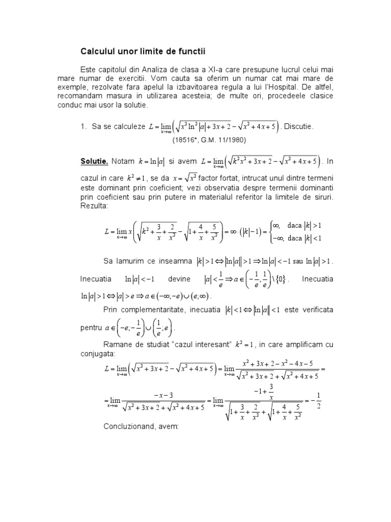 Calculul Unor Limite De Functii