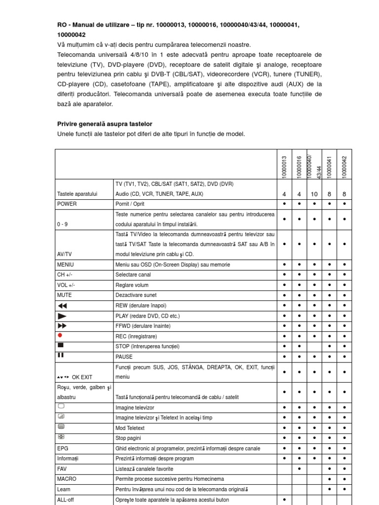 Coduri Si Instructiuni Telecomanda Universala Watson Urc 22b 6n