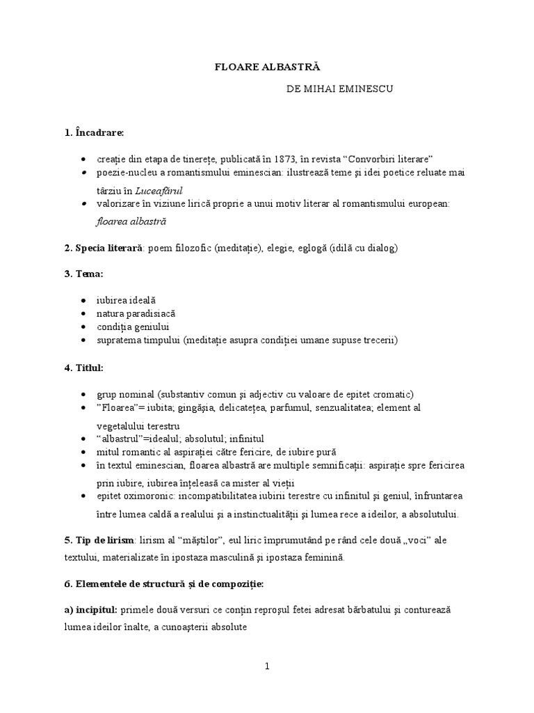 Fisa De Lectura Dorinta De Mihai Eminescu