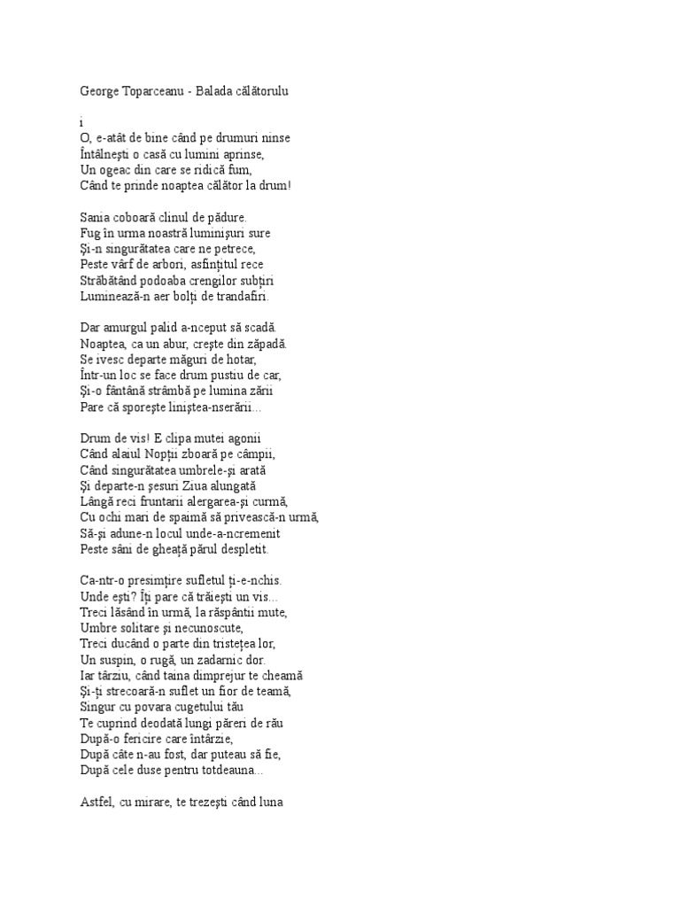 George Toparceanu Poems Balada Calatorului