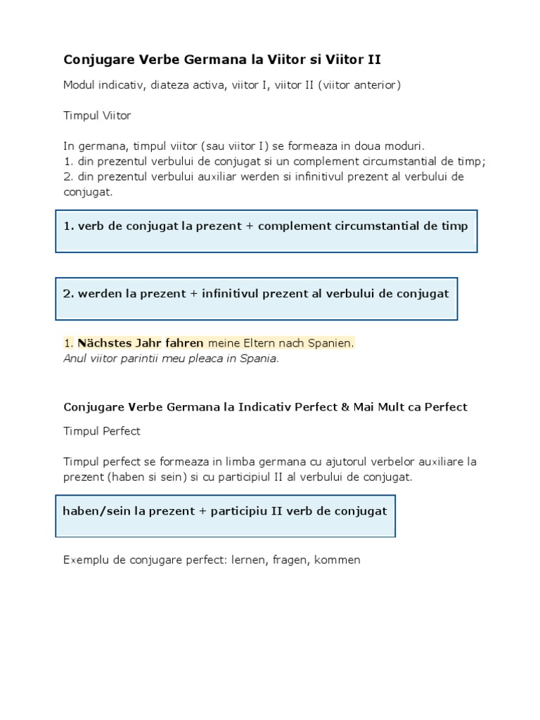 Conjugare Verbe Germana La Viitor Si Viitor Ii