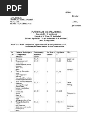 Going For Gold Upper Intermediate Planificare Calendaristica Vnd59x5egrlx