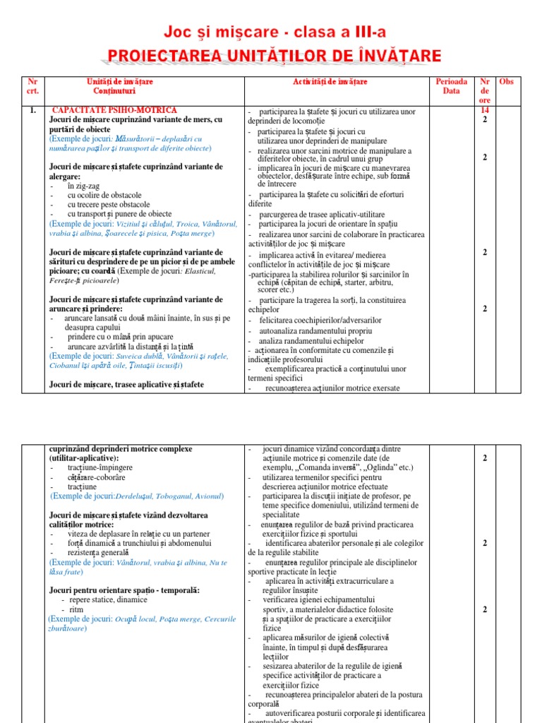 Planificare Joc Si Miscare Cl Iii A Mea