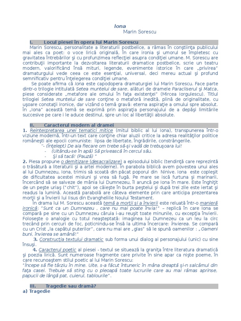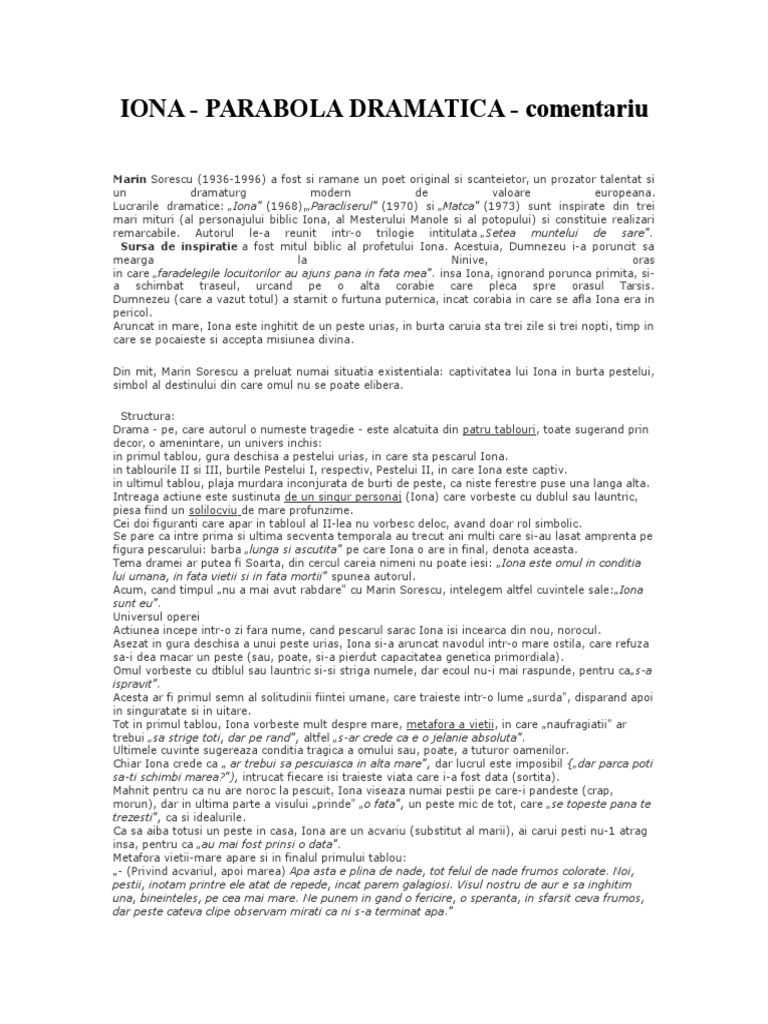 Iona Parabola Dramatica Comentariu