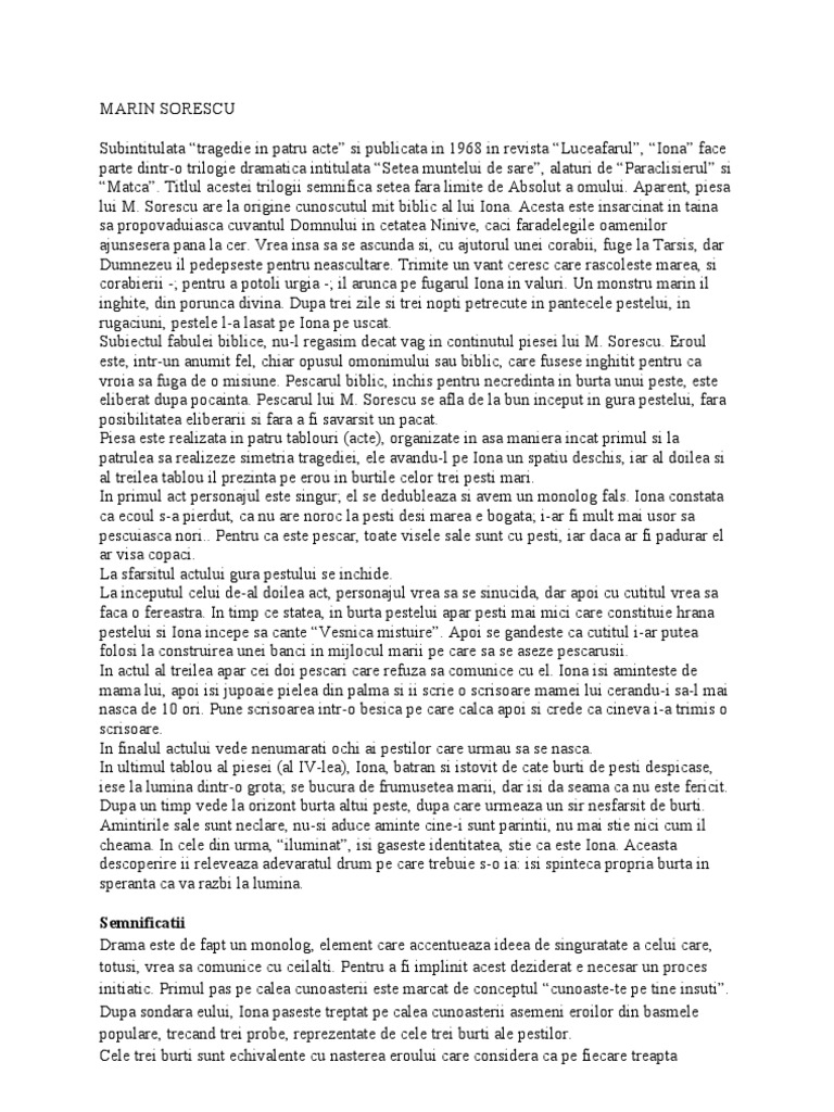 Marin Sorescu Iona Si Matca