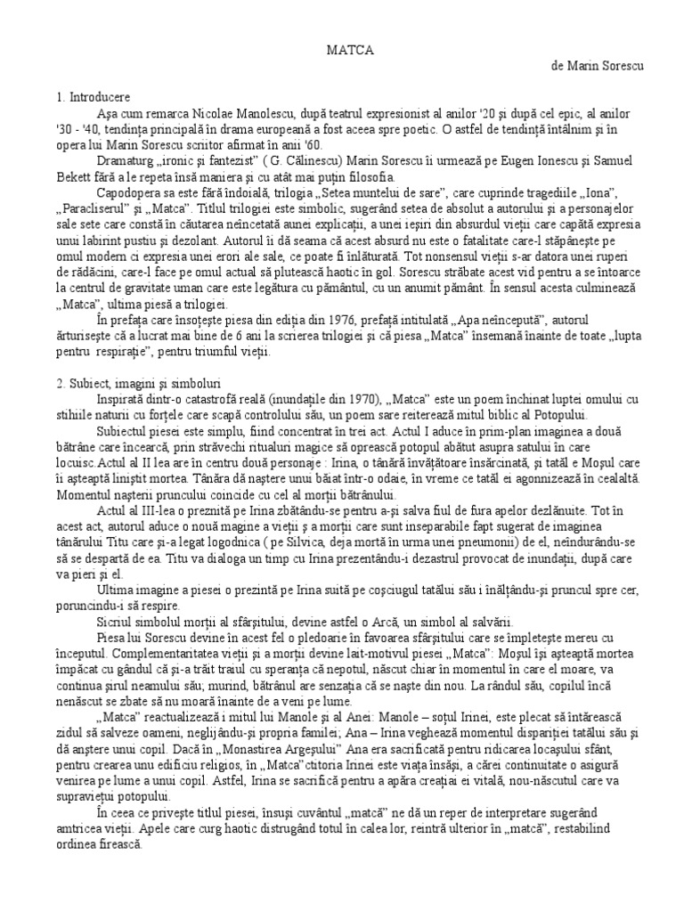 Matca De Marin Sorescu Docx