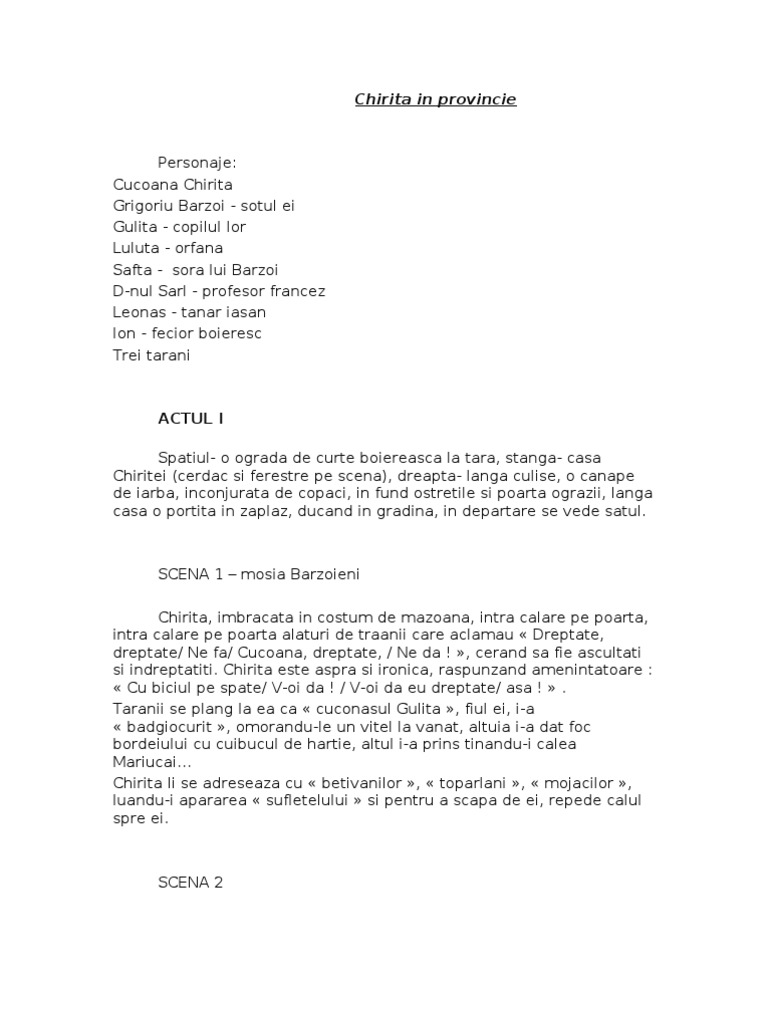 Chirita In Provincie Rezumat Pe Acte Si Scene