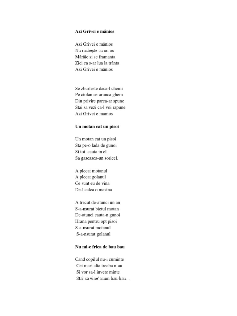 Poezii Si Cantece Pentru Serbari