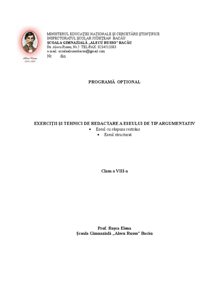 Programa Optional Eseul Argumentativ