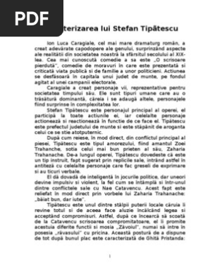 Doc Caracterizare Stefan Tipatescu O Scrisoare Pierduta De I L Caragiale Elena Grigorescu Academia Edu