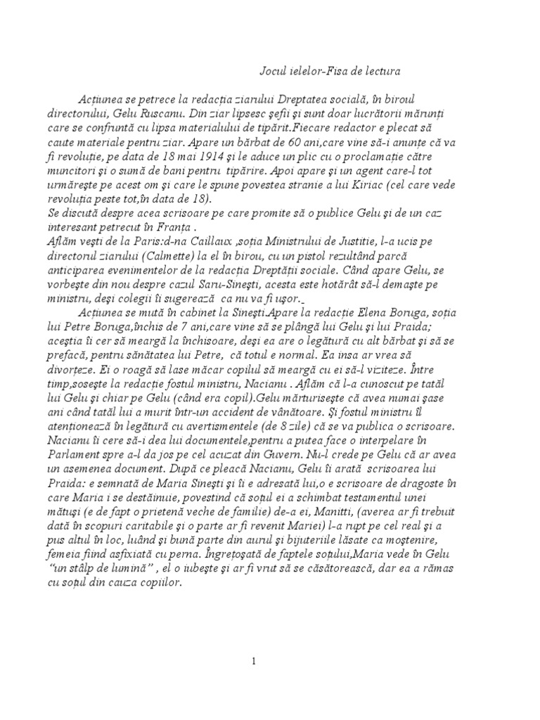 Fisa De Lectura O Scrisoare Pierduta Pdf Document