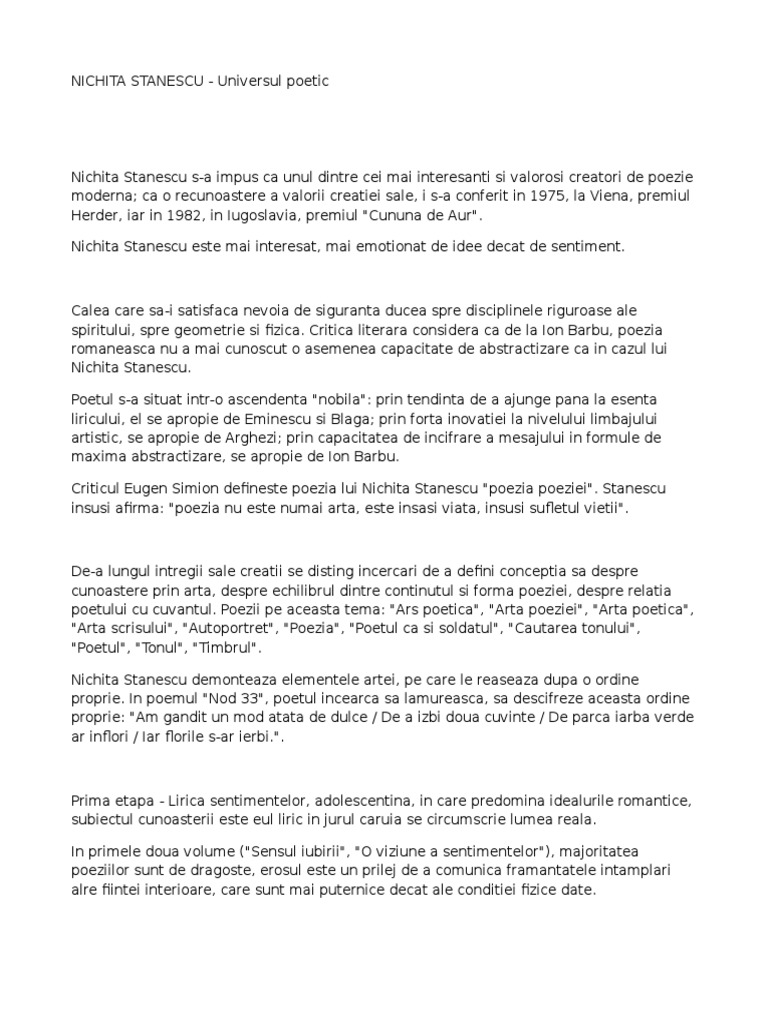 Referat Nichita Stanescu Romana 6683 Regielive