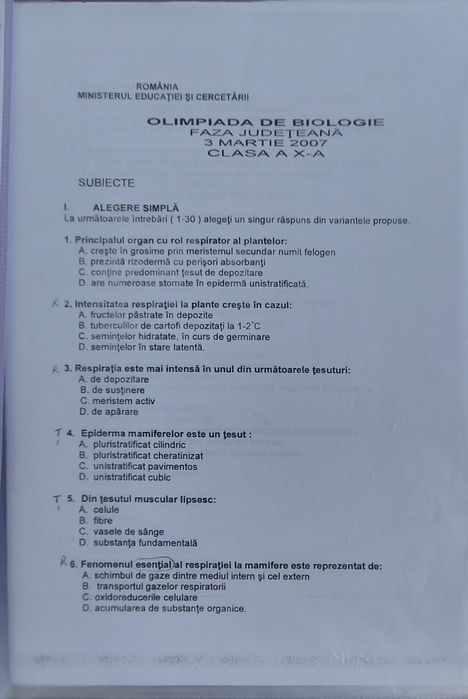 Subiecte Olimpiada De Biologie Clasa A 7 A Bucuresti Sectorul 5 Olx Ro