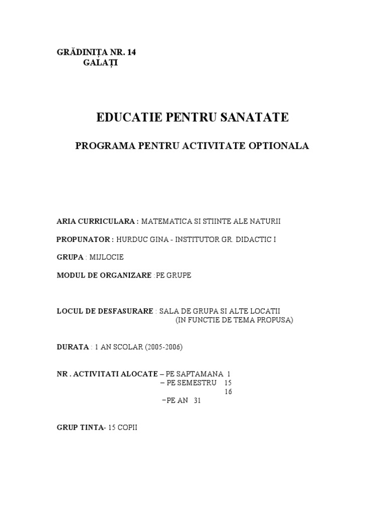 Educatie Pentru Sanatate Optional Sabina Educ 15 08 2019