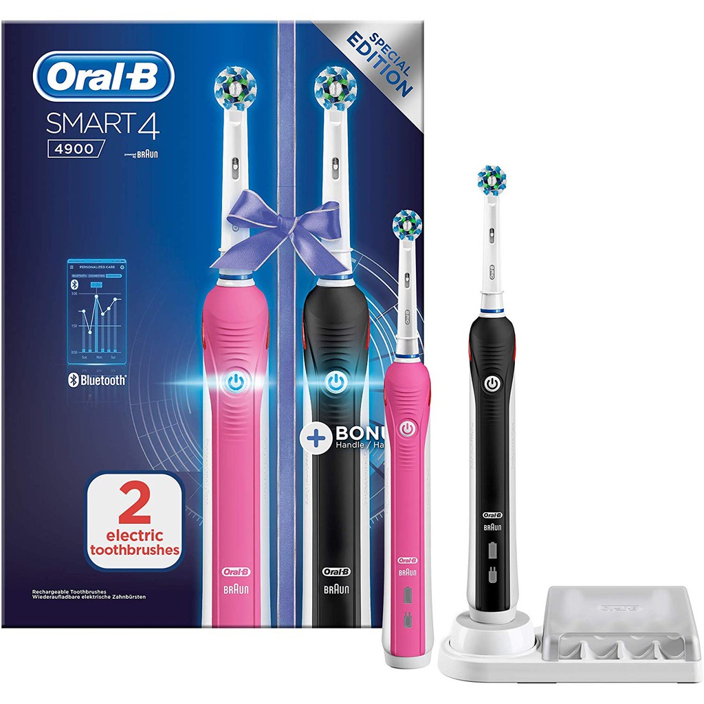 Oral B Smart 4 4900 Set Of 2 Electric Toothbrushes Rechargeable 2 App Connected Handles Pink And Black Shopee Malaysia