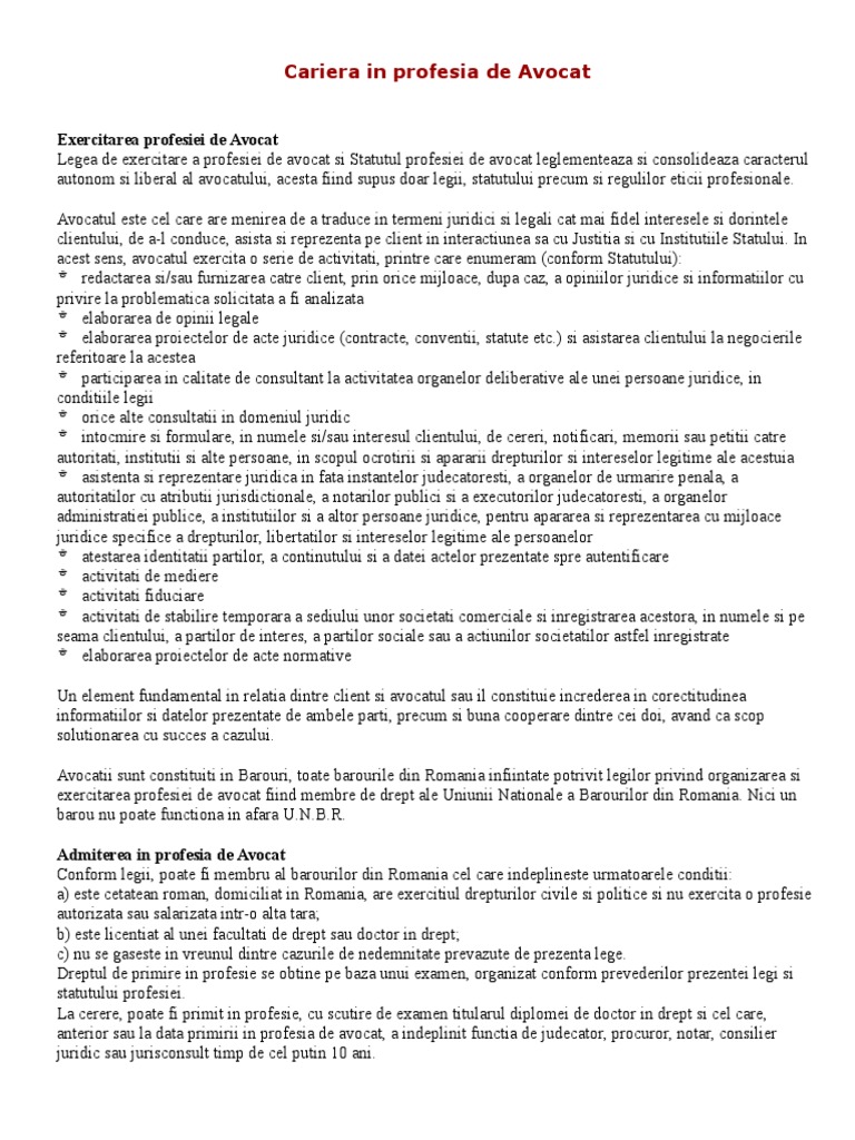 Organizarea Si Exercitarea Profesiei De Avocat Pdf