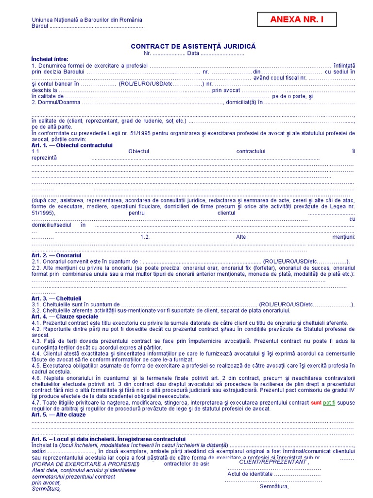 Anexa 1 Contractul De Asistenta Juridica Doc