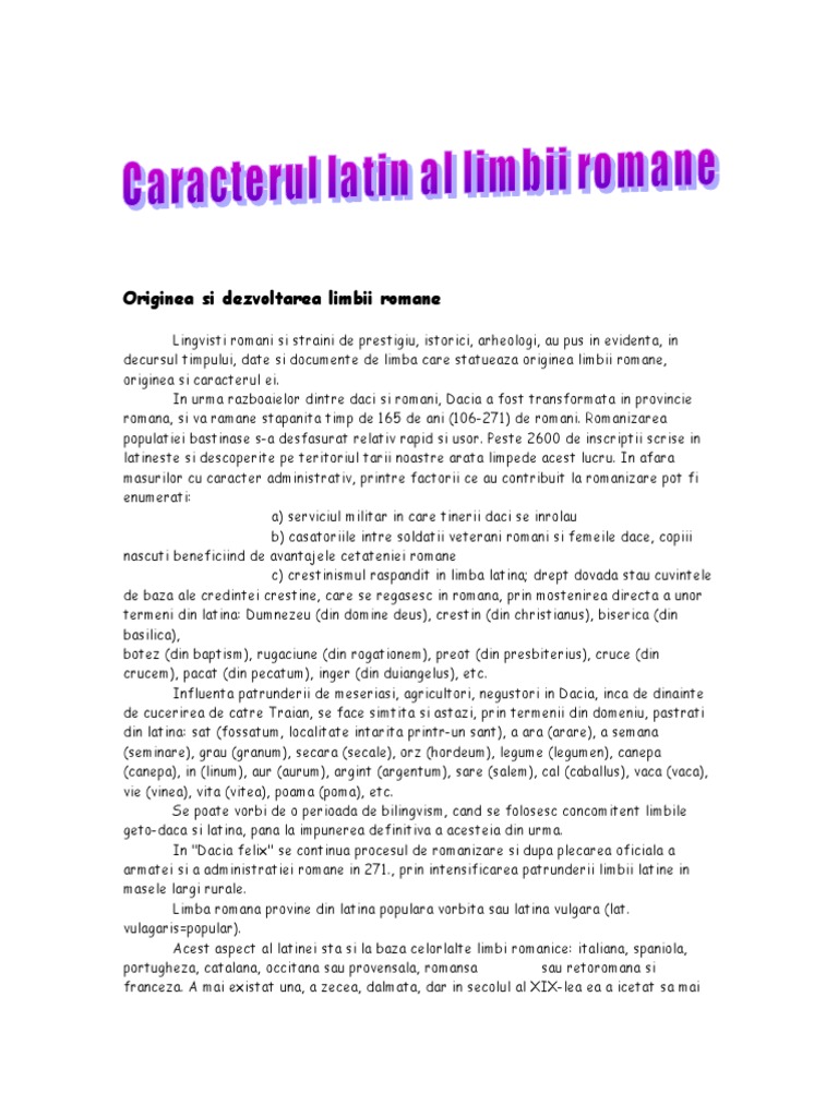 Referat Despre Originea Si Dezvoltarea Limbii Romane Famouswhy Ro