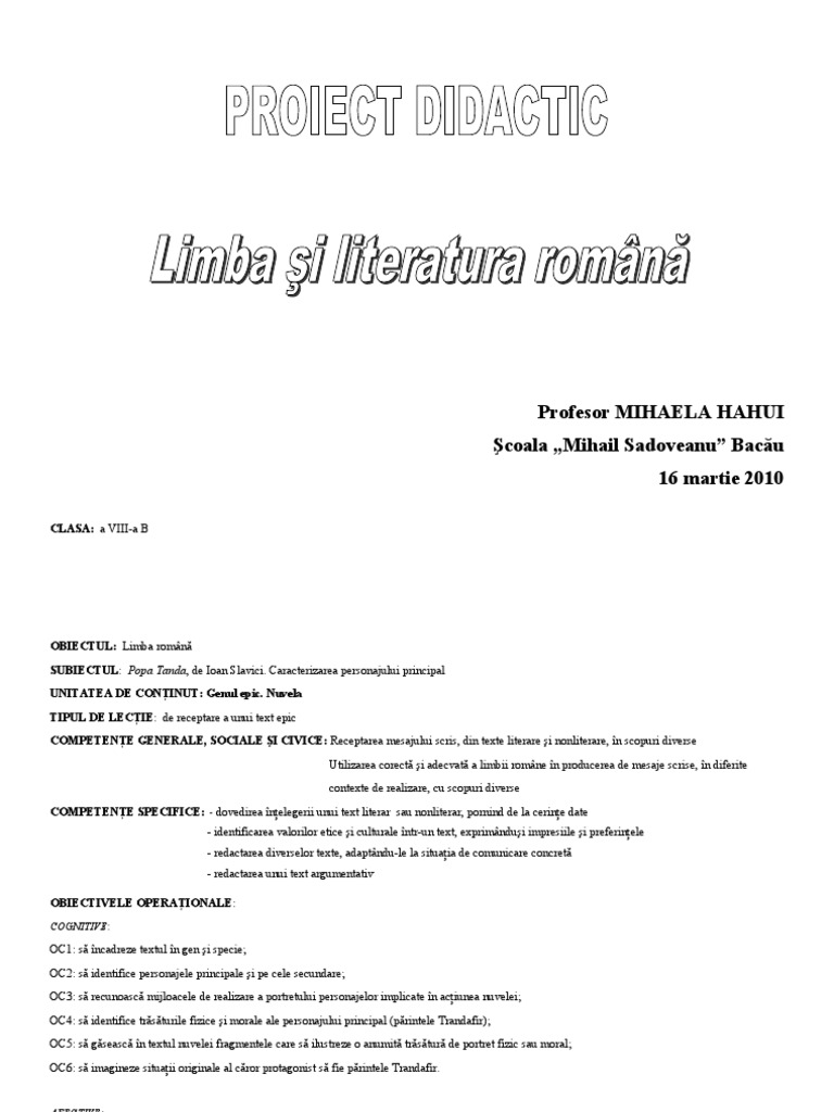Este o opera literara epica in proza in care se relateaza intr o succesiune de episoade evenimente reale si imaginare din viata personajelor popa tanda caracterizarea personajului. 3 verbe 3 articole hotărâte 3 articole nehotărâte 3 pronume și 3 perepoz. El este urmarit pe parcursul relatiei sale cu satenii din saraceni. Romanul începe prin a prezenta personajul ce i dă nume.