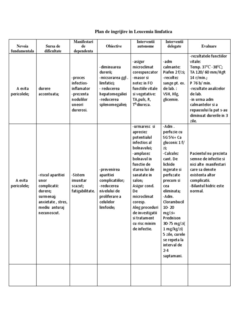 Studiu De Caz Plan De Ingrijiri A Bolnavului Cu Leucemie