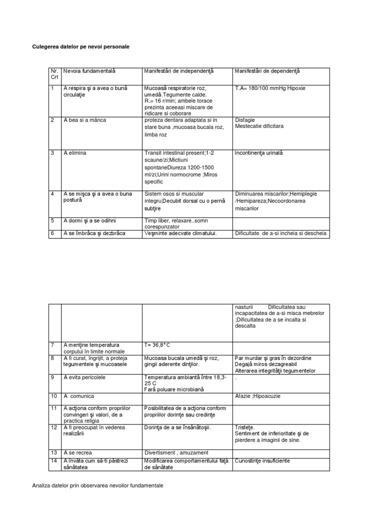 Tabel Nevoi Model Pt Plan De Ingrijire