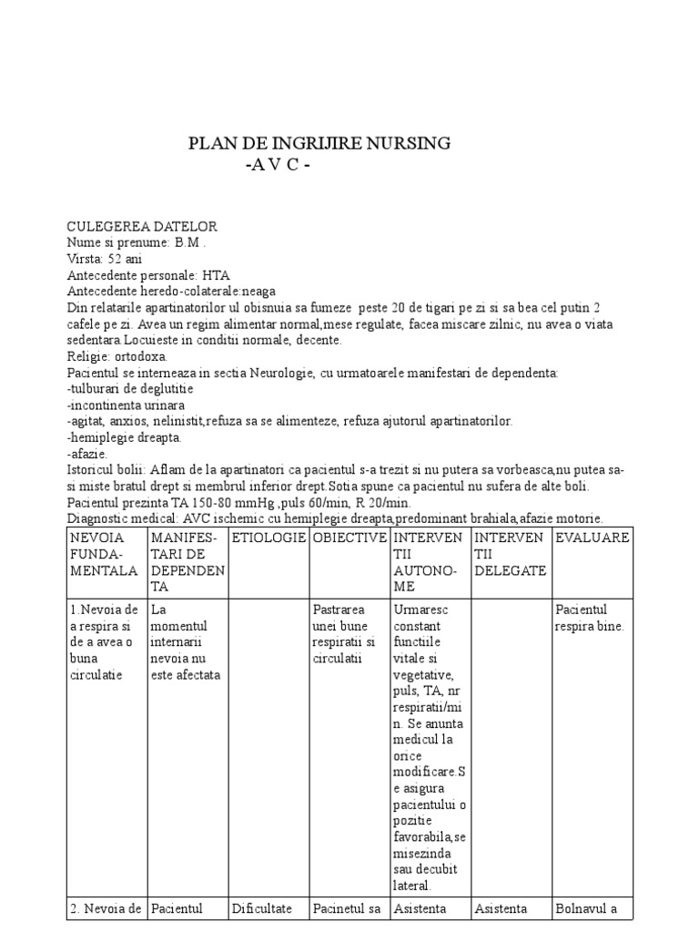 126156749 Plan De Ingrijire A Pacientului Cu Avc
