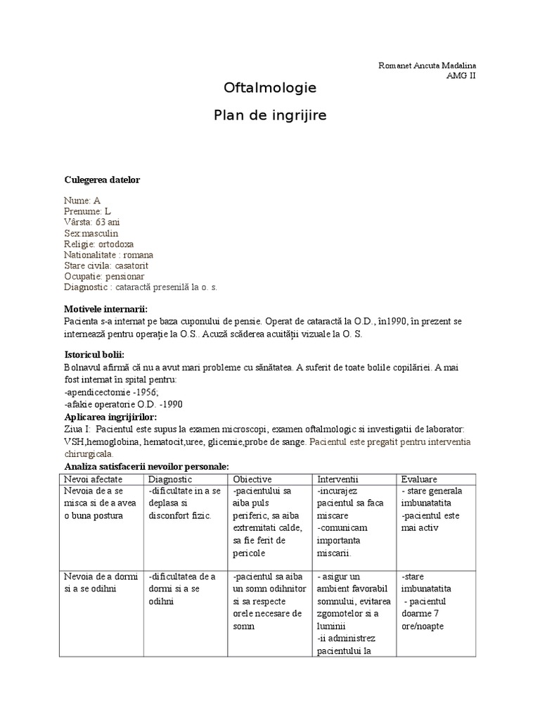 Ingrijirea Pacientului Cu Cataracta Diploma Ro
