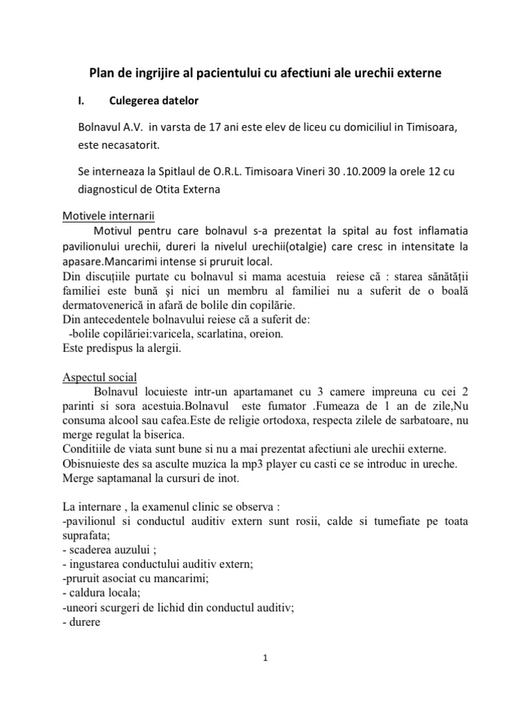 40216092 Plan De Ingrijire Al Pacientului Cu Afectiuni Ale Urechii Externe