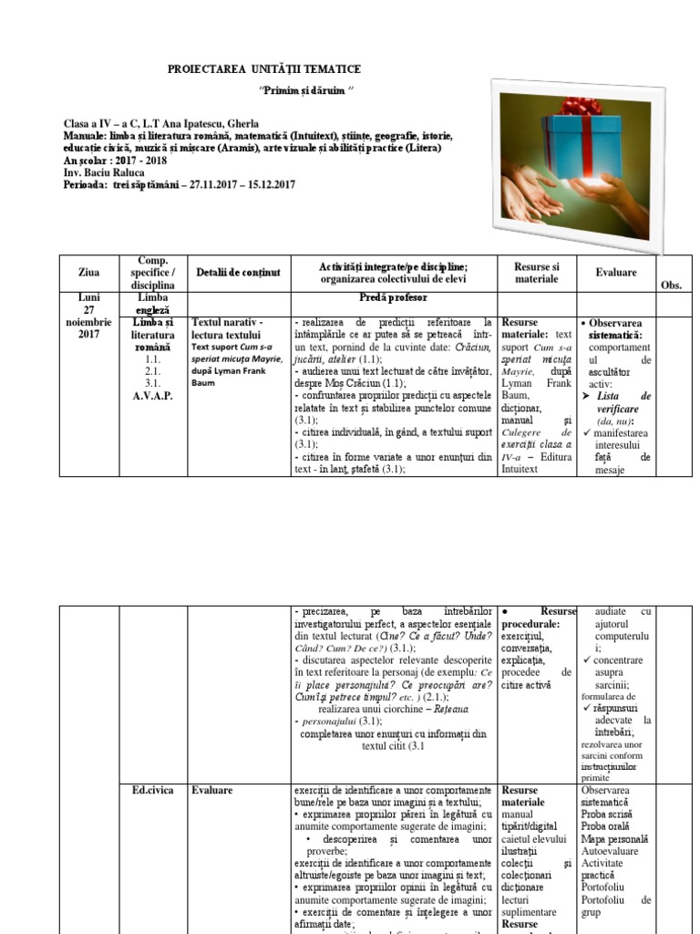 Doc Planificare Calendaristica Cornelia Gradinariu Academia Edu