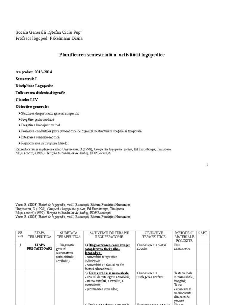 Planificare Sem I Diselxie Disgrafie Doc