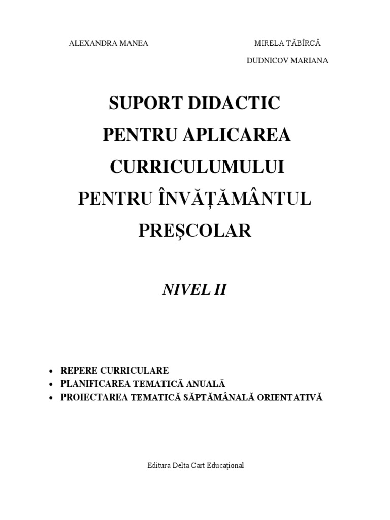 Suport Didactic Pentru Aplicarea Curricumului Pentru Invatamantul Prescolar Nivel Ii Model 2 Editura Delta Cart Educational
